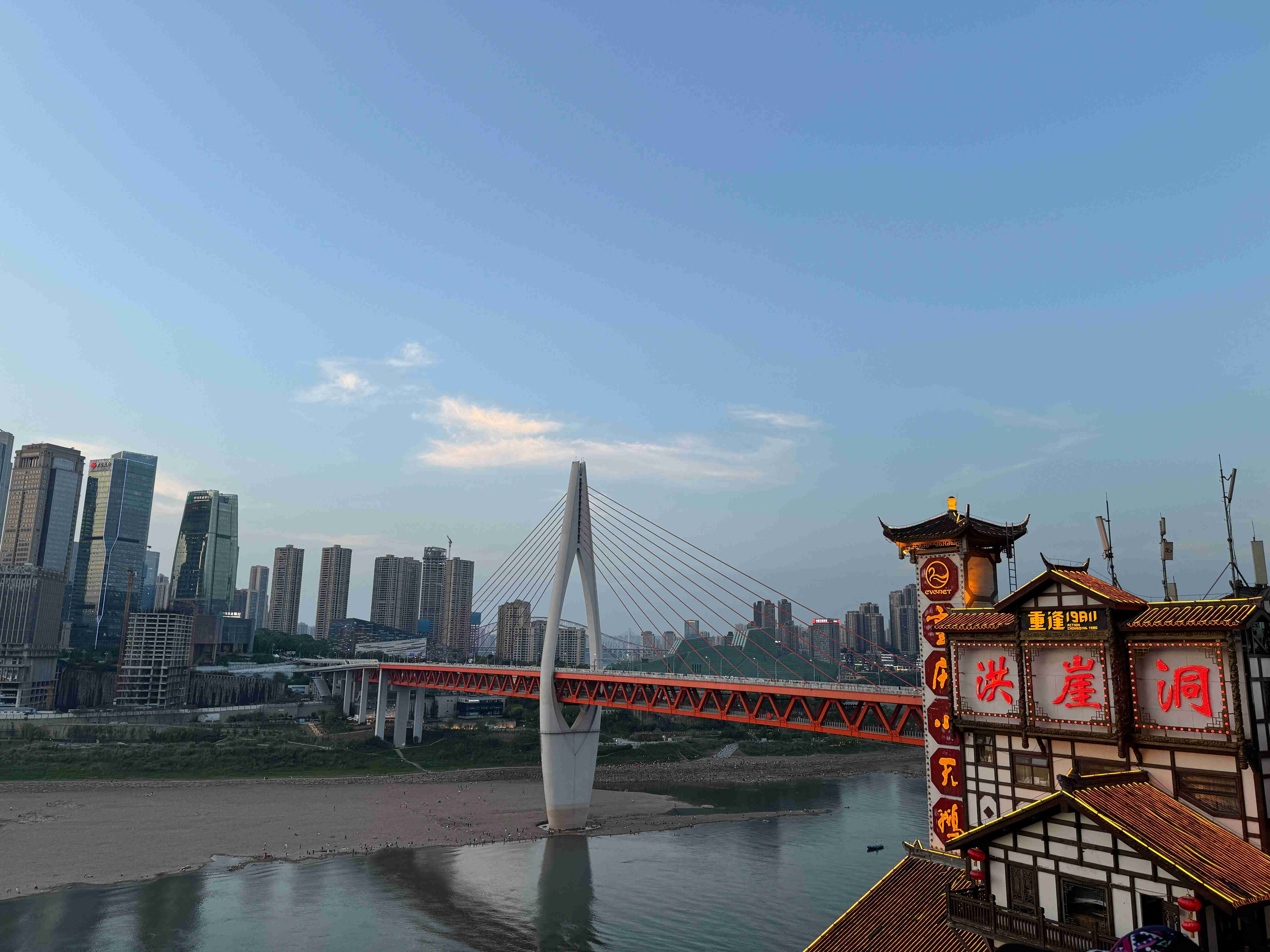 【長江索道】被稱為「重慶空中大巴」,是跨越長江、連接渝中與南岸兩區的重要交通方式,也是旅遊必訪項目。搭乘索道可從高空俯瞰長江兩岸的都市景觀,包括江面行船、層層高樓與立交橋梁,充分展現重慶山城與江城的雙重特色。索道運行平穩,約需數分鐘,途中視野開闊,是欣賞城市全景與拍攝空拍效果照片的絕佳方式。