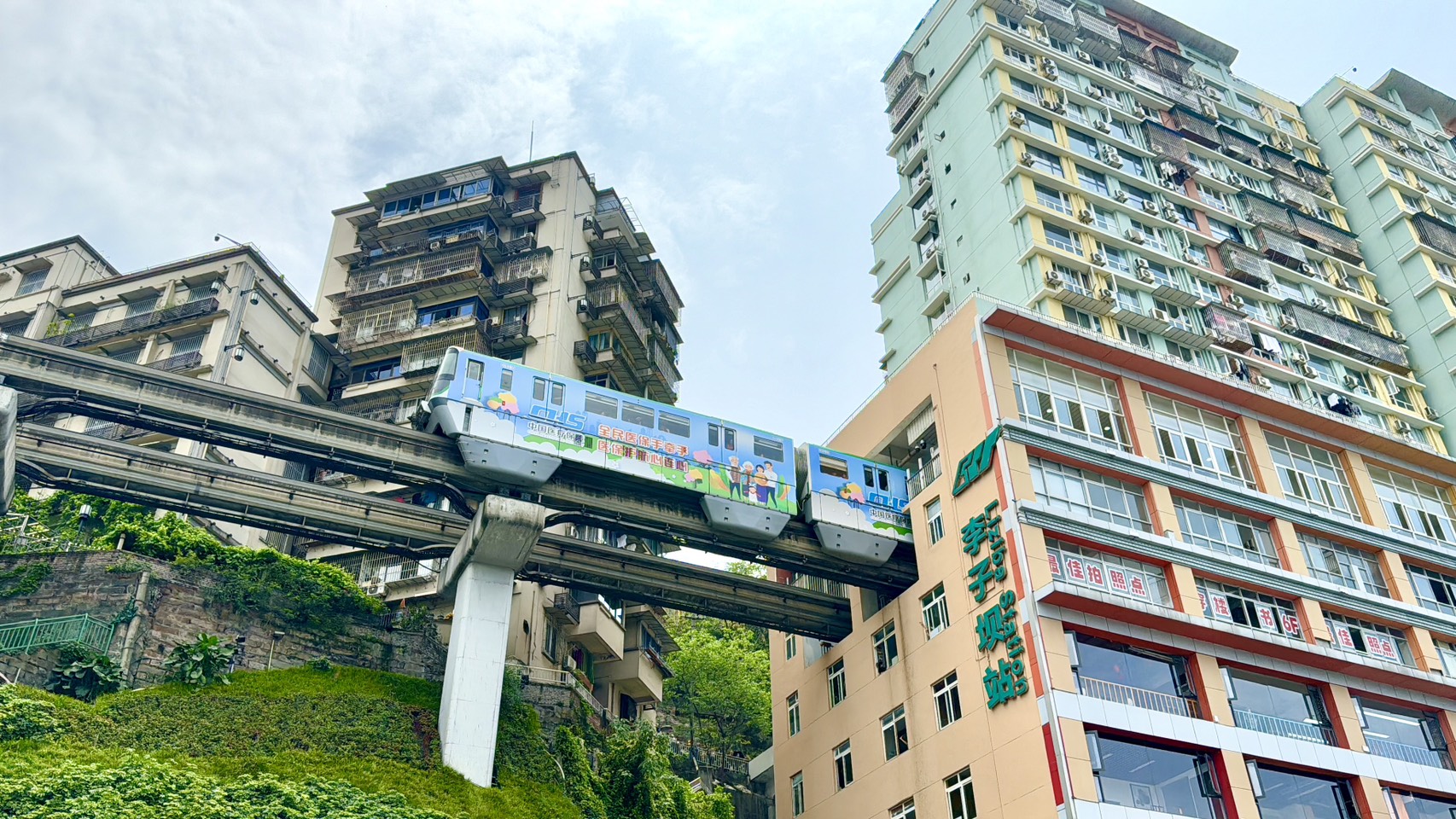 【李子壩地鐵穿樓】李子壩觀景平台,位於重慶市嘉陵江濱江路,是“單軌穿樓”觀景位置。(遊玩時長約30分鐘) - 搭乘重慶地鐵